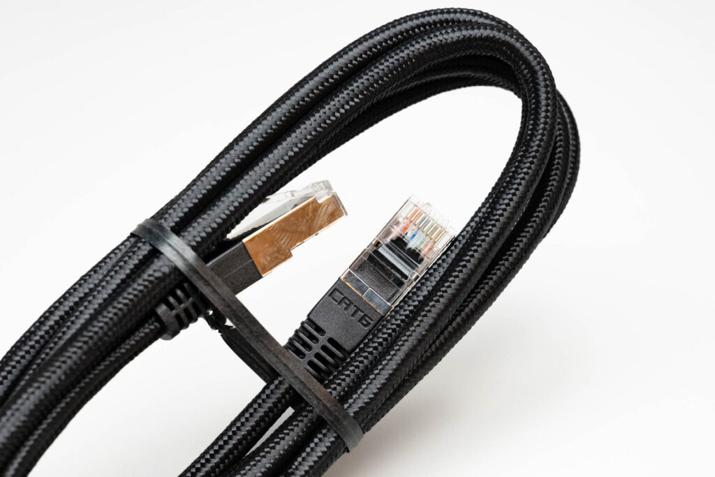 LANケーブルはナイロン網の頑丈なタイプで、規格はカテゴリー6なので10Gbps対応です。