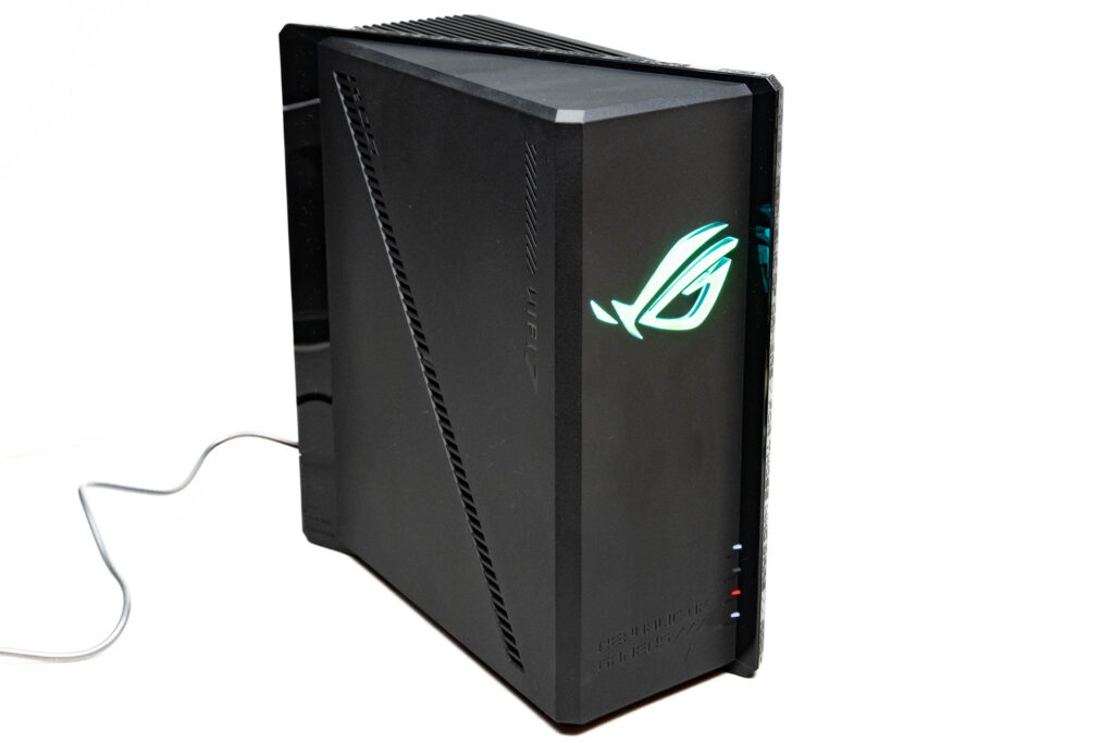 その点、今回レビューしていくROG Strix GS-BE7200Xはトゲトゲしたアンテナも生えていないし、本体もミニPCくらいのサイズ感で、置き場所を選ばないスタイリッシュな見た目ながらも高性能と、なんだか丁度よさそうなWi-Fiルーターです。