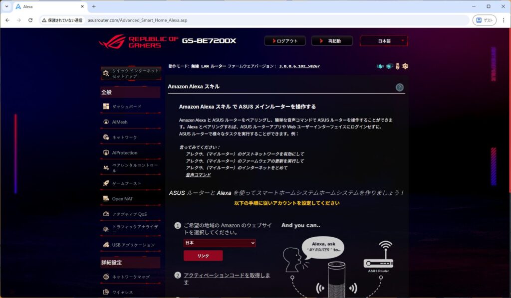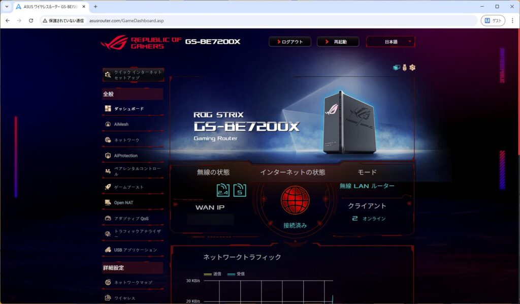 ログインするとこれまたROGブランドのPCやデバイスを使い慣れた人には「いつものROG」を感じさせるデザインの管理画面が表示されます。