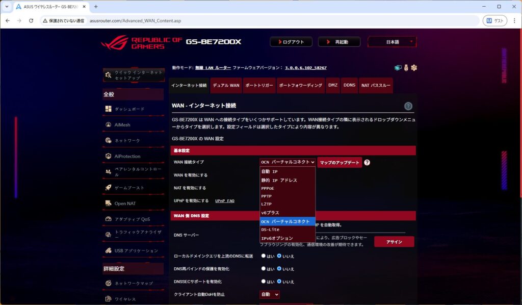 豊富な設定項目、もちろん各社のIPv4 Over IPv6にも対応