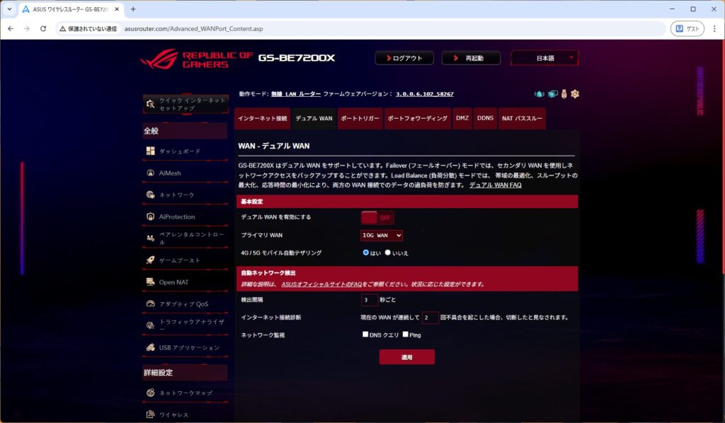 これは2.5GbpsのLANポートを2つ目のWANポートとして利用し、10GbpsのWANポート回線がトラブル等で利用できないとき、2.5Gbpsポートに繋いだ別の回線を使って、インターネット接続を維持できる機能です。