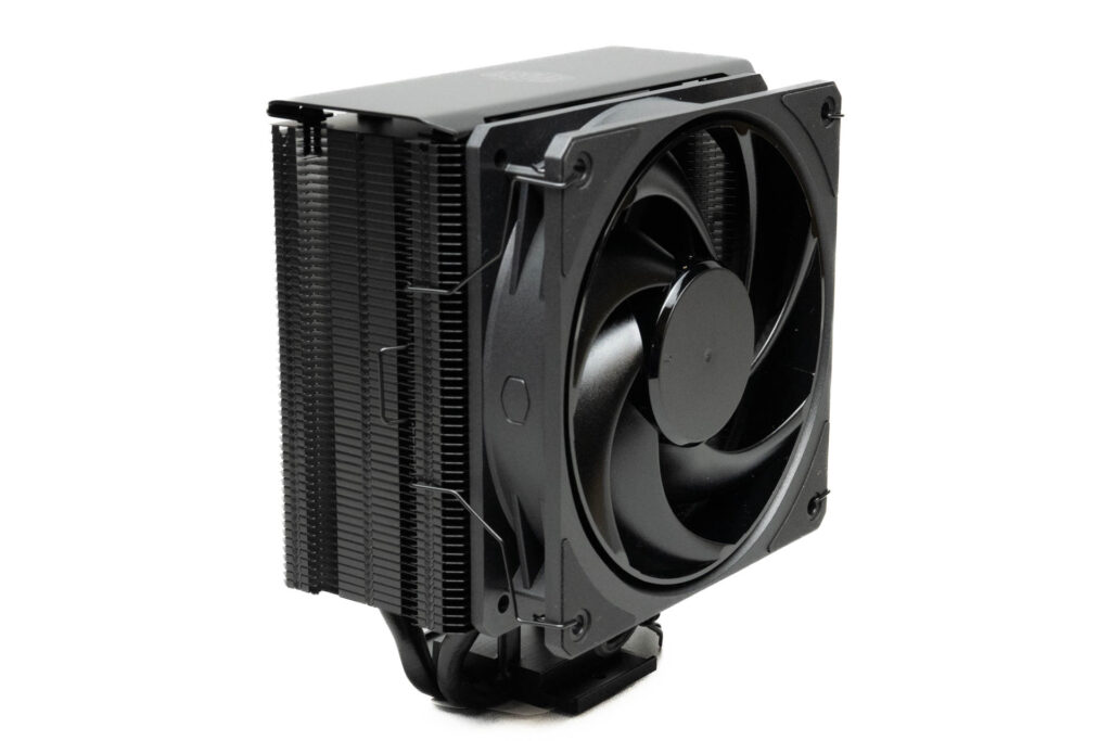 この状態ではCPUの冷却能力が低下してしまうわけですが、実測で2度違うかどうかくらいの差でしたし、ビデオカードに干渉しコネクタ部分に負担がかかる方が寿命を縮めてしまうだろうと考え、メーカー推奨ではない方法ですがおさまりのいい取り付けを行うことができました。