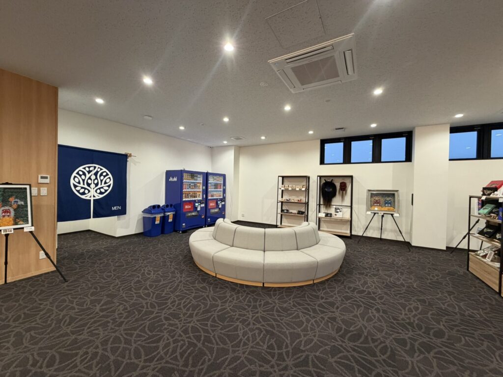 こちらは待合スペースの正面、大浴場側。こちらの待合スペースもソファが多く設置されているので、もし万が一チェックインに時間がかかる、ここで人と待ち合わせる必要がある場合でも、ゆっくりできるのはうれしいおもてなしです。