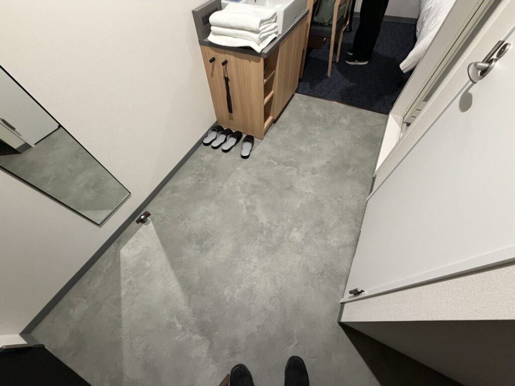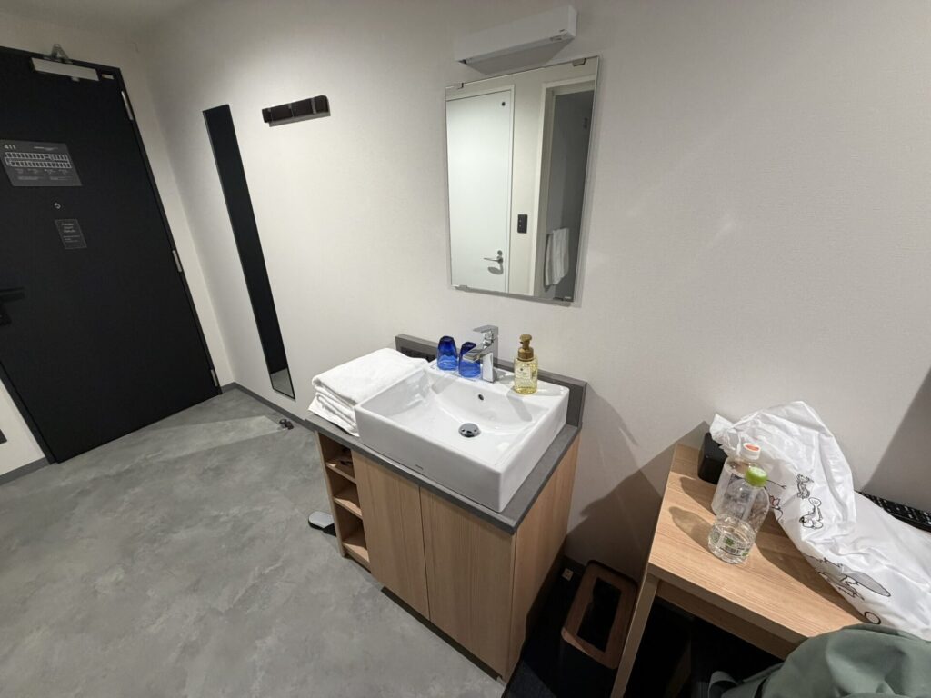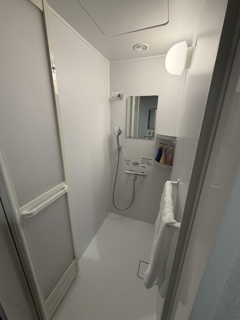 今回泊まったダブルルームには浴室がなくシャワーブースのみ。ゆっくりお風呂に浸かりたい場合は1Fの大浴場を利用します。