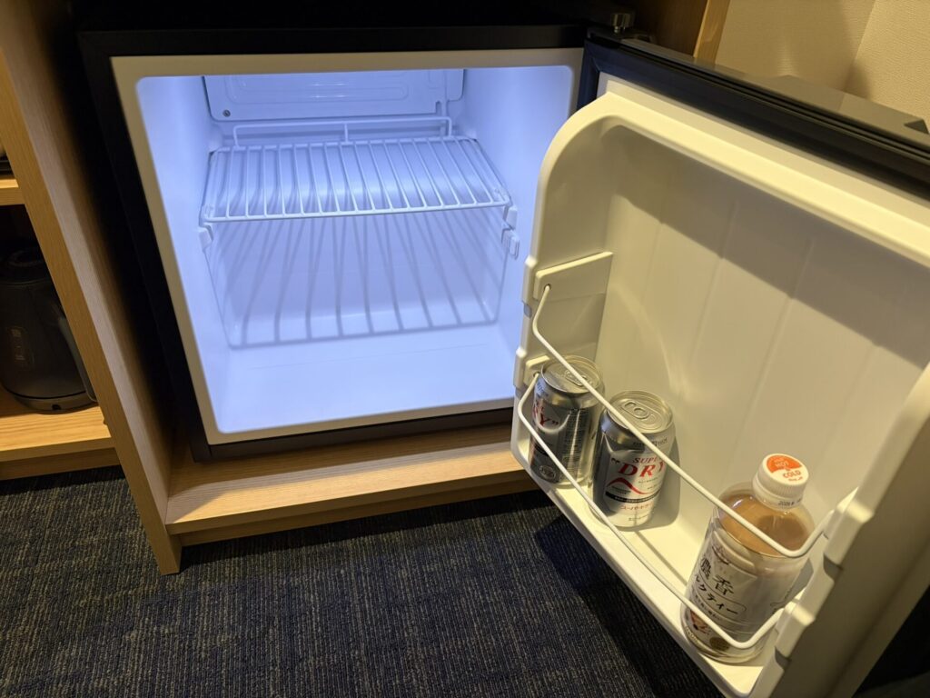 冷蔵庫はビジネスホテルによくある冷蔵のみのコンパクトなタイプですね。