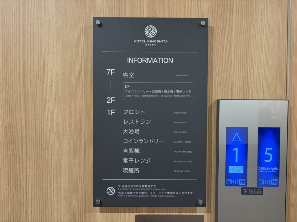 このへんは女性にはうれしい・安心な話だと思いますが、フロント階(1階)から2階以上の宿泊階への移動は、カードキーが必須です。