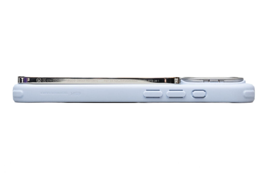 「5mm以下ってどんだけ薄いんだ」って話なんですが、CIOのSMARTCOBY SLIMⅡ Wireless 2.0 8Kと、ケースをつけたiPhone 17と比べてみるとめっちゃ薄いのがわかります。