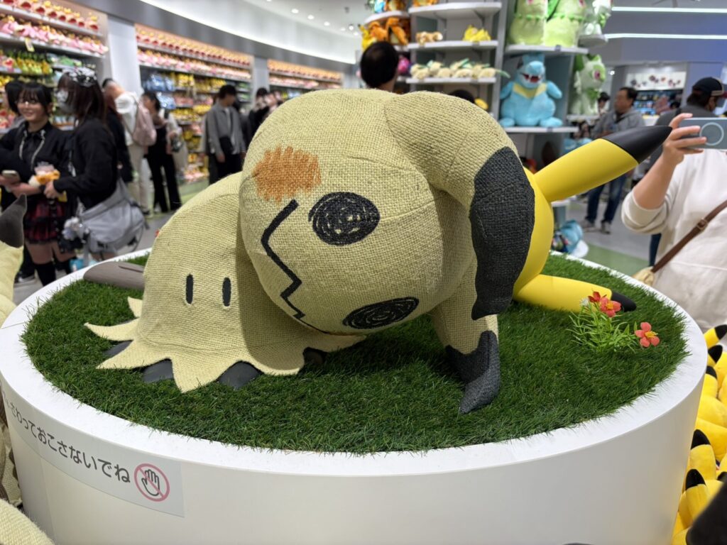 関東圏(ポケモンなので、カントーと表記したい)だと池袋はその時点で最新作のでんせつのポケモンがフィーチャーされる傾向にありますし、スカイツリー・ソラマチ店はレックウザ、シブヤはミュウツーなど、結構強面が並んでいるのに見慣れているせいで、カガワののほほんとした雰囲気はちょっと意外。