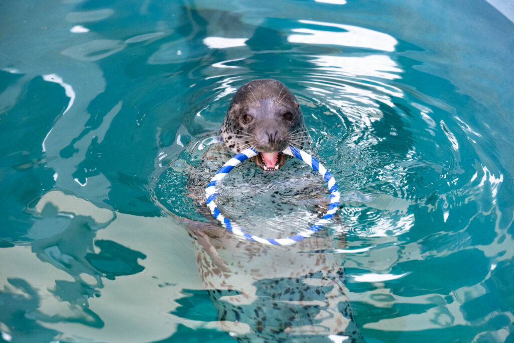 男鹿水族館GAOにいるアザラシは5頭。みんなかわいいんだけど、そろそろ3歳になるターボが特にかわいい。