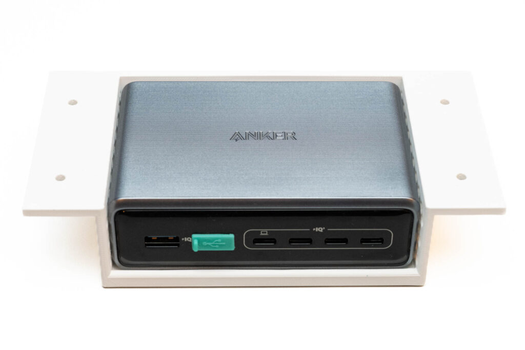これはAnkerのマルチポートの充電器をデスク天板の下に取り付けるマウンターです。